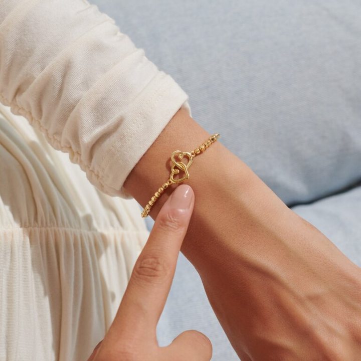 Discover our beautiful Forever Yours Collection, made to be gifted with love and treasured for a lifetime. The beautiful little Forever Yours 'So Very Proud Of You' Bracelet In Gold-Tone Plating features our classic gold-tone plated hammered beads and a pretty interlocked charm. Sitting on a pretty blush pink card, and finished with a sweet poem, this bracelet is ideal for celebrating every special moment.