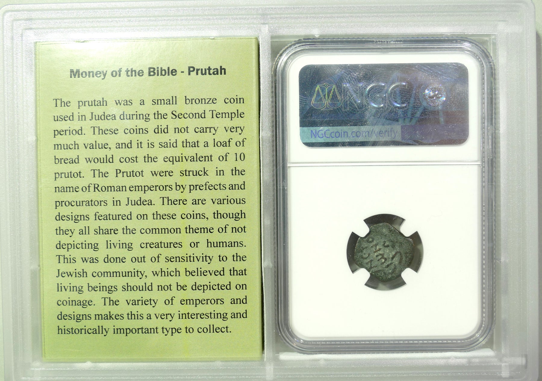 These coins not only held practical value but also carried a symbolic weight, representing both the sovereignty of local rulers and the religious practices centered around the Second Temple. The bronze pruta serves as a tangible connection to the past, allowing modern viewers to better understand the social, political, and religious dynamics of an ancient society.